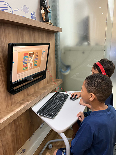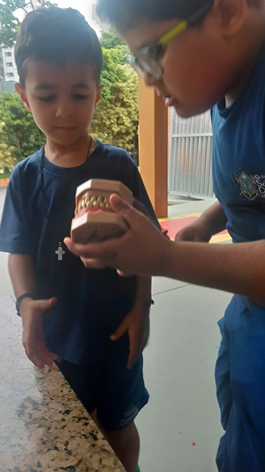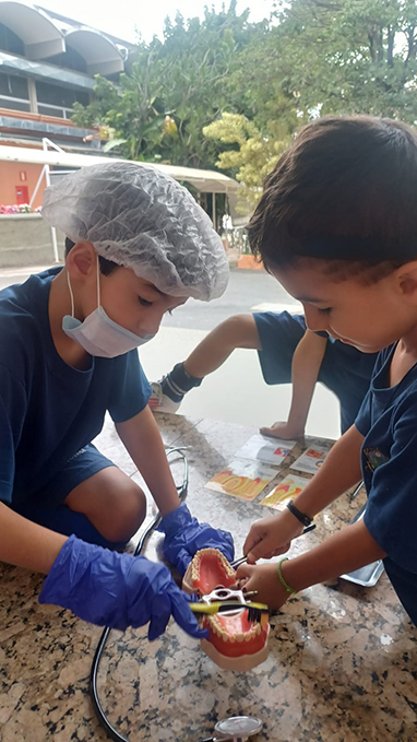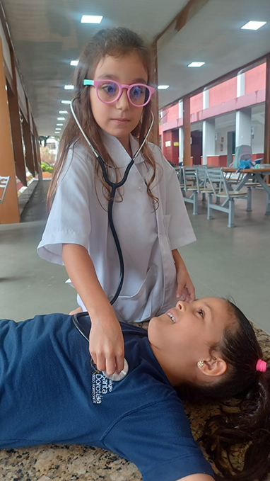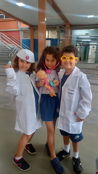 Além das diversas possibilidades da sala, os pequenos estudantes conheceram lugares como o Laboratório de Tecnologias Educacionais para uma aula diferenciada sobre partes do corpo. A inauguração do livro literário da etapa se estendeu pelos pátios e ainda teve um faz de conta especial, com detetives e profissões!