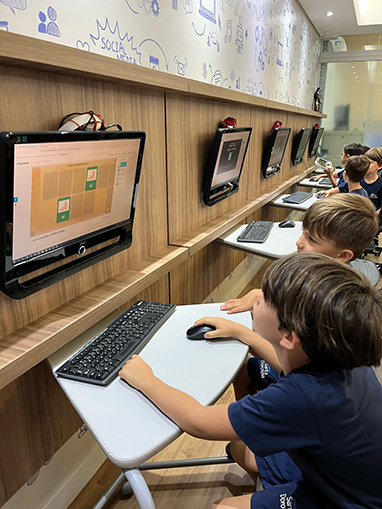 As turmas do 1º Ano do Ensino Fundamental percorrem os espaços de aprendizagem do Colégio para descobrirem mais formas de estudar.