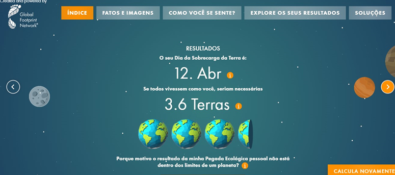 Os estudantes do 7º ano fizeram uma interessante simulação de como seu estilo de vida atual e seu projeto de vida para o futuro têm um impacto no consumo dos recursos naturais do planeta!
