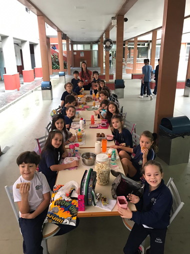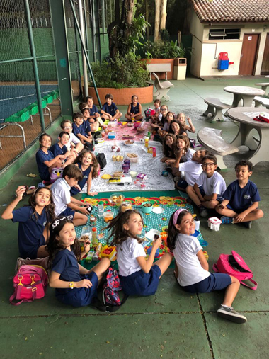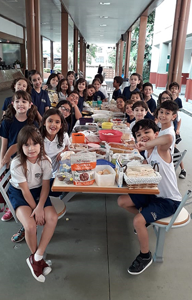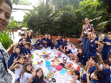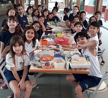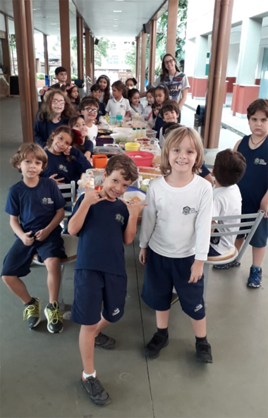 As crianças viraram detetives em casa! Elas investigaram geladeira e armários em busca de alimentos saudáveis. Listaram dez alimentos que são saudáveis e que estão presentes em suas rotinas domésticas. Após essa investigação, elas receberam um desafio! Pesquisar receitas de bolos e biscoitos e trazer um pouco para a escola para compartilhar com seus colegas. O desfecho foi a degustação de alimentos trazidos pela turma. Esse momento foi registrado com muita alegria!