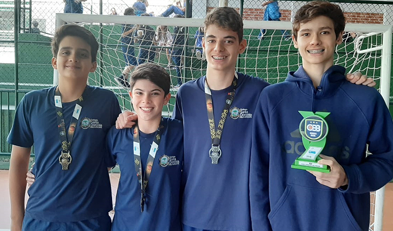 “No último dia 05/05, nossos alunos e atletas de Basquete, fizeram uma emocionante final pelo Campeonato Brasileiro de Clubes. Três alunos sagraram-se campeões pelo Minas Tênis Clube e um aluno vice-campão pelo Olympico Club. Rafael Cançado (8º ano), Arthur Cunha (9º) e Gabriel Almeida (8º) foram campeões e Miguel Mousinho (8º), vice. Gabriel foi ainda o MVP (jogador mais valioso) da final.