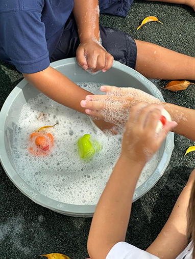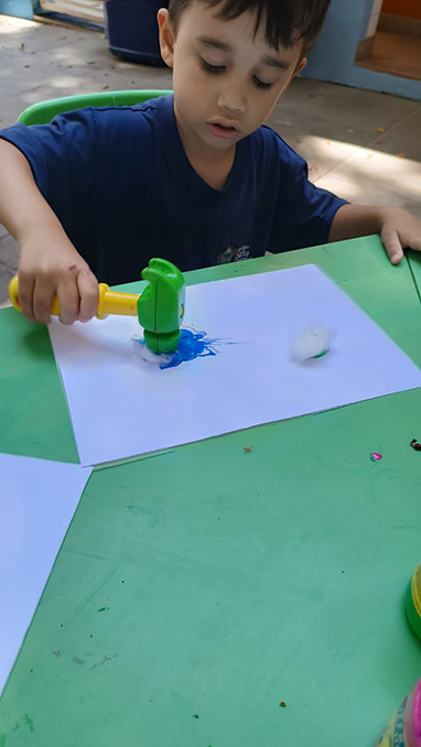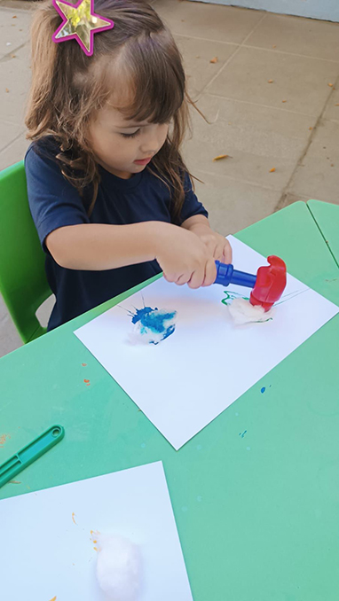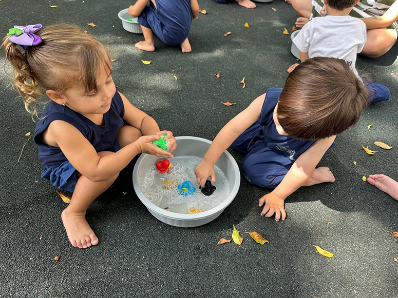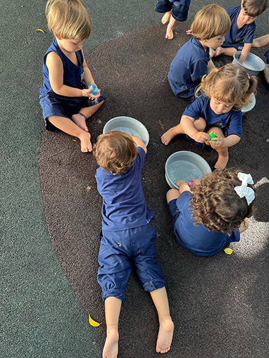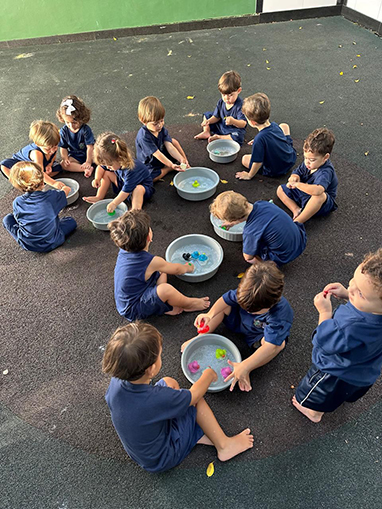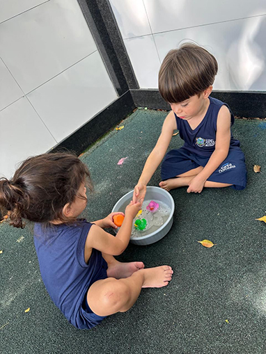 No Maternal 3, as crianças aprimoram a psicomotricidade por meio de movimentos intencionais, como a manipulação de materiais variados do jogo de adivinhação “What color is under the cotton?” Elas também desenvolvem habilidades sensoriais no aprendizado lúdico, como na história “Five Little Ducks”, sobre os cuidados com o corpo e no trabalho com opostos, como molhado/seco, gelado/quente, grande/pequeno, pesado/leve.