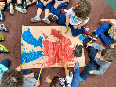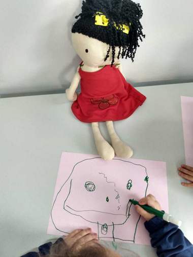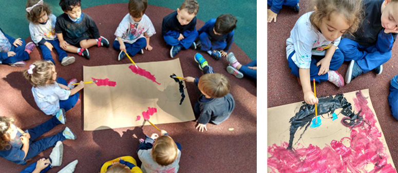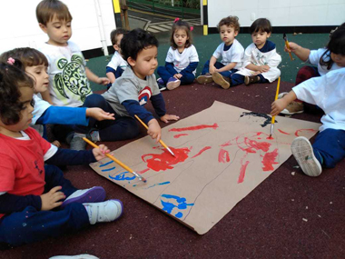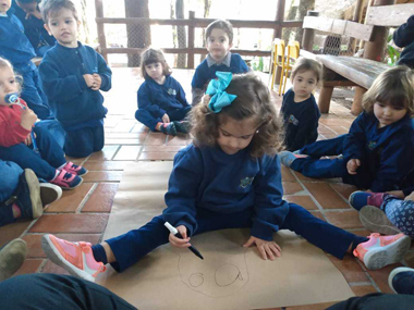 O Maternal 2 trabalha, em paralelo com a história Cadê Clarisse? explorada pelas professoras regentes, partes do corpo em Inglês e pinturas baseadas em observação.