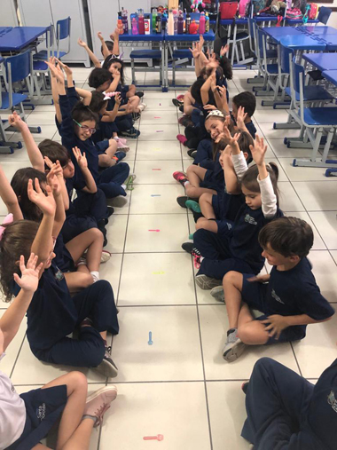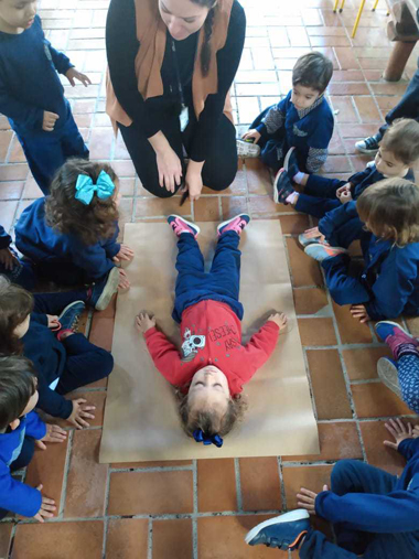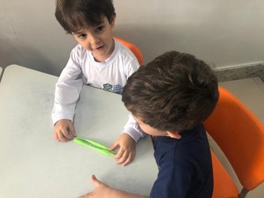 Infantil 2: Primeira semana de aula com jogos variados e dramatização, que permitem que a criança vivencie o aprendizado e trabalhe a agilidade, o controle inibitório e a expressividade.