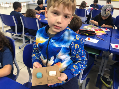 Trabalho incrÃvel do 1o ano! Explorando os sólidos geométricos de maneira divertida e criativa. Essas esculturas impressionantes foram criadas com peças de brinquedos e massinha, mostrando o talento e a imaginação dos nossos pequenos artistas.