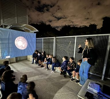 Familiares e grupos escolares de outras instituições podem agendar visita para atividades cientÃficas de observação. Envie e-mail para obervatorio@santadoroteia.com.br