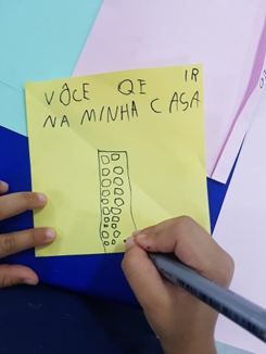 “Hoje eu respondi a carta do meu amigo, fiz um desenho e deixei um bilhete.”