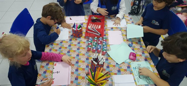 A turma da professora Fernanda Corrêa tem uma caixa muito especial em sala: um Correio. Mas as cartas que chegam não são do carteiro e sim dos alunos da sala. As crianças, desde o primeiro semestre, trocam cartas, bilhetes e convites. É um momento muito especial para a turma! Olhinhos atentos ao final do dia: