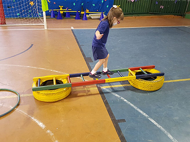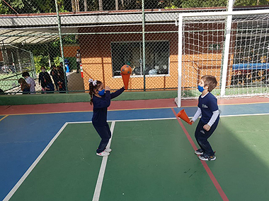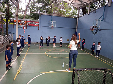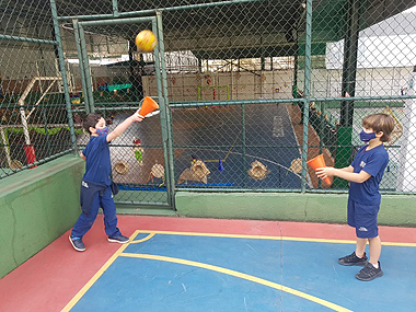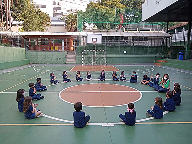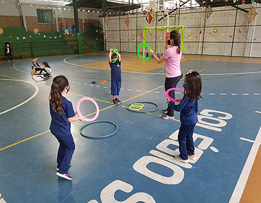 Nesta faixa etária as crianças sentem-se mais seguras e adoram desafios. Exploram todos os espaços da escola: parques, quadras e pátio: com brincadeiras, danças, e muita diversão! Ninguém fica parado! Um dos lugares preferidos e muito usado pelas turmas do Infantil 2 são as quadras da escola. Nesse espaço as turmas tem aula de Educação FÃsica, participam de circuitos, brincadeiras livres e dirigidas com objetivo de ampliar gradualmente o conhecimento sobre o controle do corpo e dos movimentos. E assim, a cada dia, modificam os gestos, comportamentos e aprendem cada vez mais!