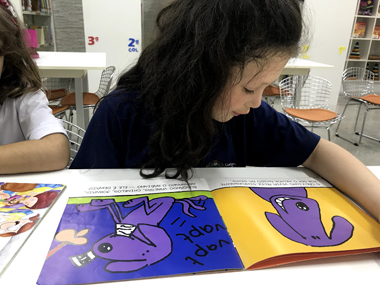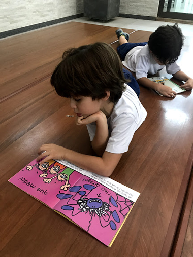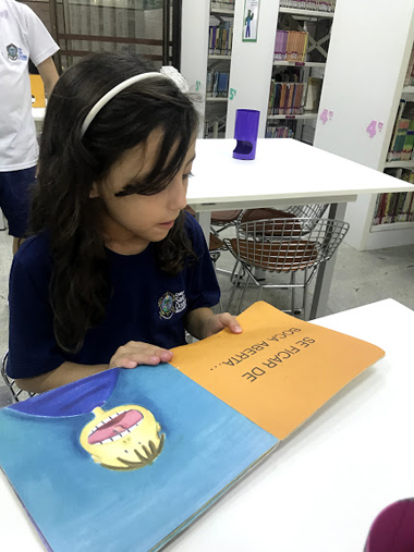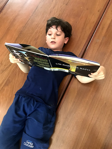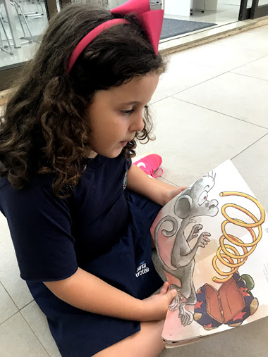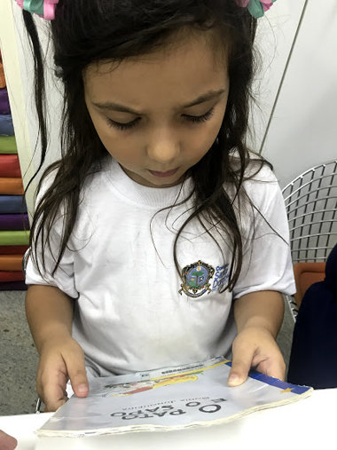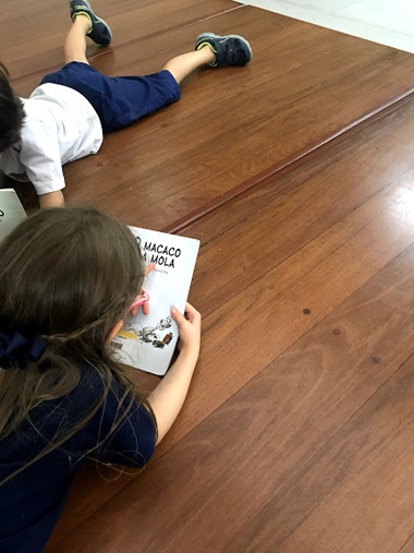 Nessa última semana, a proposta foi a leitura individualizada ou em pequenos grupos de algumas histórias. Enquanto as crianças se divertiam e mergulhavam na história, a Professora avaliava como está o desenvolvimento da leitura delas. A intervenção e avaliação da docente é discreta e imperceptível para não mudar o foco principal: SENTIR PRAZER PELA LEITURA!