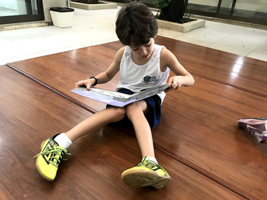 As visitas ao Centro de Estudos são quinzenais e as crianças sempre vão entusiasmadas. O primeiro passo é relembrar os combinados do comportamento em uma biblioteca, respeitando as outras pessoas que estão no lugar e também têm o direito de se concentrarem em suas atividades.