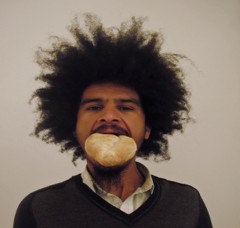 Pão e Circo (2012). Três autorretratos: pão na boca, nos olhos e nas orelhas; impressão fotográfica sobre papel algodão. Em: NAZARETH, Paulo (fotografia); DIEGUES, Isabel (org.); SARDENBERG, Ricardo (org.). Paulo Nazareth: arte contemporânea LTDA. Rio de Janeiro: Cobogó, 2012. Edição bilíngue (pt-en).