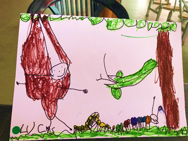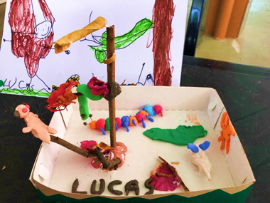 O terceiro momento ficou por conta da Oficina Maker, mão na massa, colocar em prática suas ideias a partir do projeto feito em sala durante a semana. Cada criança escolheu uma cena do livro “A Zeropeia”, desenhou o cenário e o personagem preferido. Recolhemos elementos da natureza para serem utilizados na oficina de modelagem.