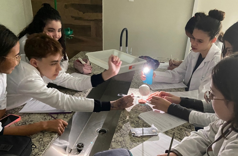 Com o uso de materiais simples e de cooperação, dias e noites, caracterÃsticas das estações do ano, sombras nas diferentes regiões do planeta, fases da Lua e eclipses solares e lunares foram representados pelos grupos e melhor entendidos em uma aula com roteiro investigativo.