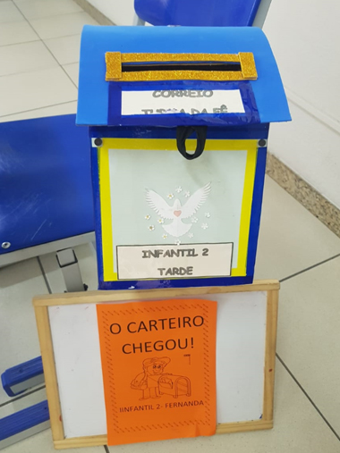 A turma do Infantil 2 tem uma caixa muito especial em sala: UM CORREIO. Mas as cartas que chegam não vêm de um carteiro, e sim dos alunos da sala. As crianças trocam bilhetes, convites e cartas. É um momento especial para a turma, que despertou o interesse para a escrita, depois da leitura do livro “O Carteiro Chegou”.