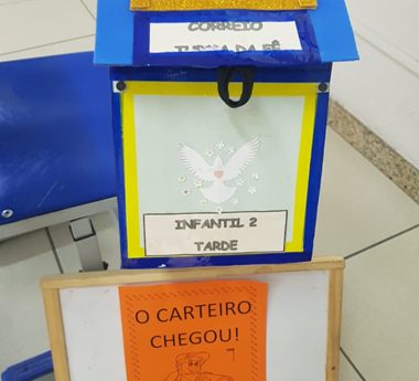 A turma do Infantil 2 tem uma caixa muito especial em sala: UM CORREIO. Mas as cartas que chegam não vêm de um carteiro, e sim dos alunos da sala. As crianças trocam bilhetes, convites e cartas. É um momento especial para a turma, que despertou o interesse para a escrita, depois da leitura do livro “O Carteiro Chegou”.