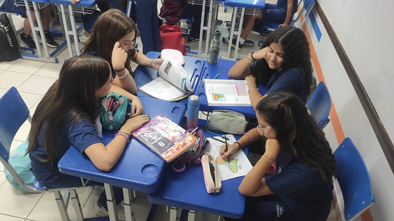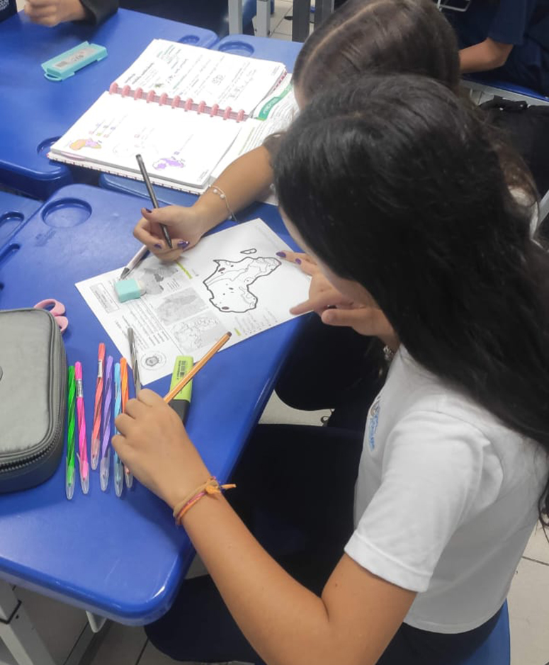 Os estudantes do 8º Ano/EF realizaram uma atividade de Geografia sobre a cartografia da África por meio da colorização de mapas impressos. Essa prática permite o desenvolvimento da percepção espacial, a memorização e a análise geográfica de forma interativa e envolvente. Além disso, o contato com materiais físicos reforça o aprendizado de modo sensorial, proporcionando a distância necessária do mundo digital.