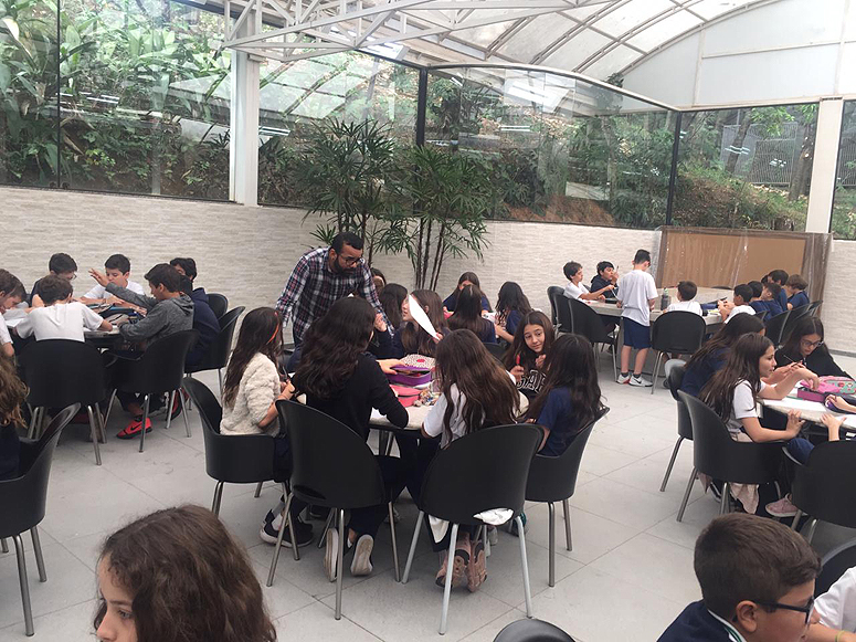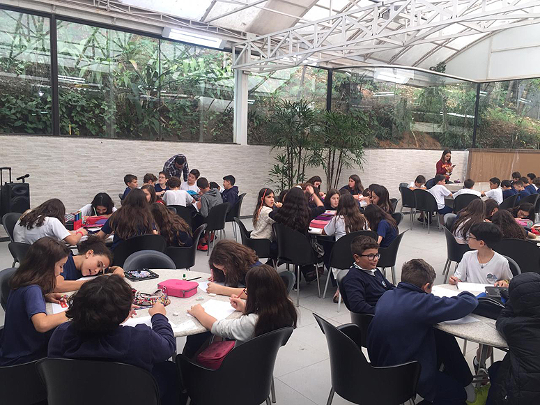 Na primeira semana de agosto, os alunos do 6º ano participaram de uma Oficina de História em Quadrinhos promovida pela Editoria Ática. Na ocasião, os estudantes tiveram a oportunidade de conhecer um quadrinista profissional que lhes explicou como funciona seu trabalho e mostrou-lhes o passo a passo para a criação de uma HQ. Esse assunto será estendido nas aulas de Produção de Texto, quando cada um poderá criar sua própria arte sob a orientação das professoras de Português.