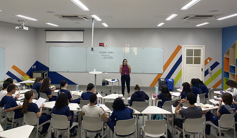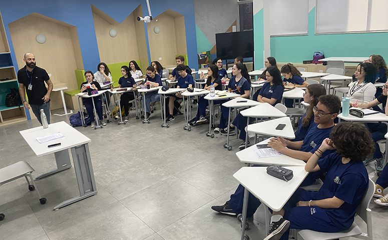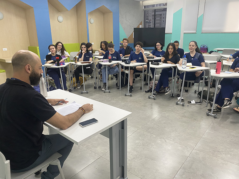 Durante o mês de setembro, os estudantes reuniram-se para discutir sobre temas filosóficos a partir de textos de grandes nomes do pensamento ocidental, como Nietzsche, Kant, Byung-Chul Han, Hanna Arendt e outros. Para a estudante Maria Reinesh, do 2º Ano do Ensino Médio, as rodas de conversa das Olimpíadas de Filosofia tem sido “uma oportunidade para aflorar o interesse em diversas áreas dos saberes humanos. Em um contexto descontraído e atual, trocamos ideias impressionantes de e para jovens pensantes”. Para o professor Sandson Rotterdan, que este ano está à frente da Olimpiada, “é inspirador ver os estudantes, em um contra turno, dedicarem tempo a pensar criticamente a realidade e dialogar com a tradição filosófica de um jeito ativo de modo que cada estudante é protagonista do diálogo”.