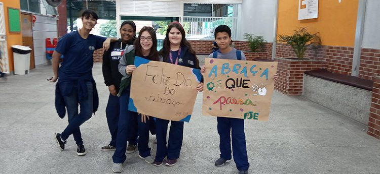 A atividade foi realizada na chegada dos alunos no turno da manhã, nas três portarias da escola e na entrada do estacionamento. Além da acolhida no início da manhã, alguns alunos da PJE foram ao refeitório no horário de lanche dos funcionários e dos professores do Ensino Fundamental 1 para desejar a eles, também, um feliz Dia do Abraço e demonstrar todo o carinho que têm por aqueles que, de forma silenciosa e discreta, fazem a nossa escola funcionar diariamente.