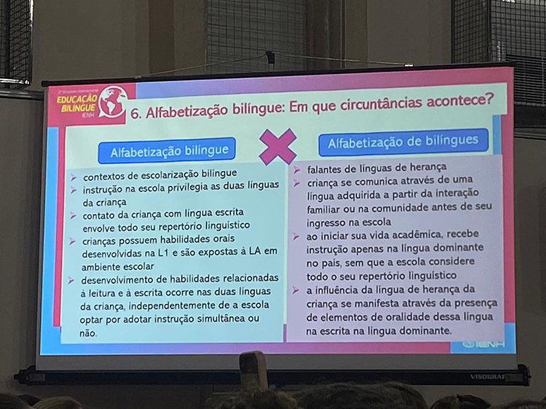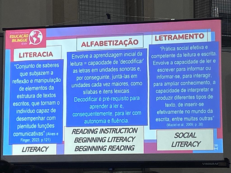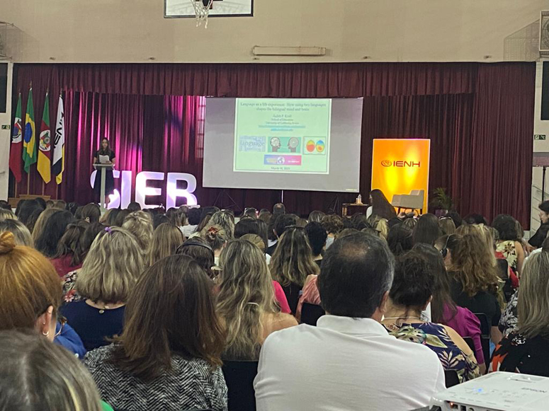 Professores, educadores e pesquisadores compartilharam seus conhecimentos e se inteiraram sobre estudos cognitivos e a prática docente na Educação Bilíngue, provocados por especialistas da área como Judith Kroll, Luciana Brentano, Ingrid Finger e Rita Ladeia.