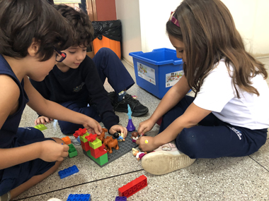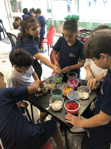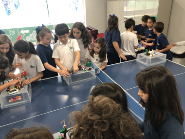 Estudantes do Ensino Fundamental exploram os conceitos trabalhados em sala usando o LEGO Education.”