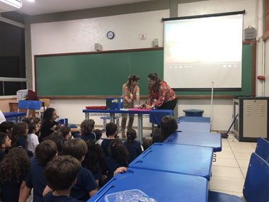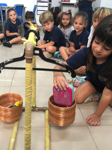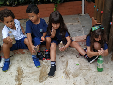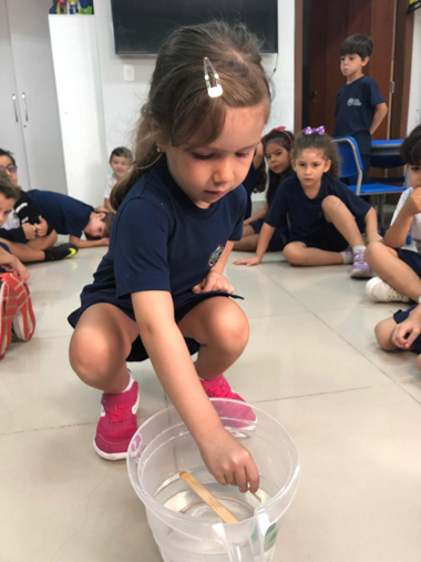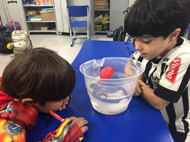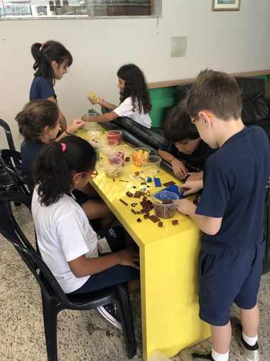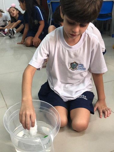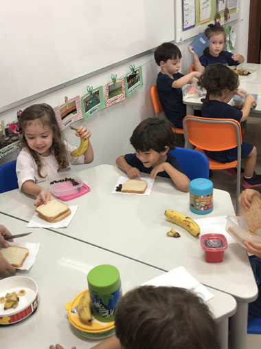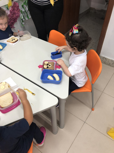 “As aulas do programa bilíngue do Colégio Santa Dorotéia são de muita exploração! Nestas fotos, as turmas do Maternal 3 constroem um urso comestível baseado na estória Goldilocks and the Three Bears, e as do Infantil 2 trabalham conceitos de opostos em inglês, através de experimentos de pesagem de objetos e de observação de objetos que afundam e flutuam.”