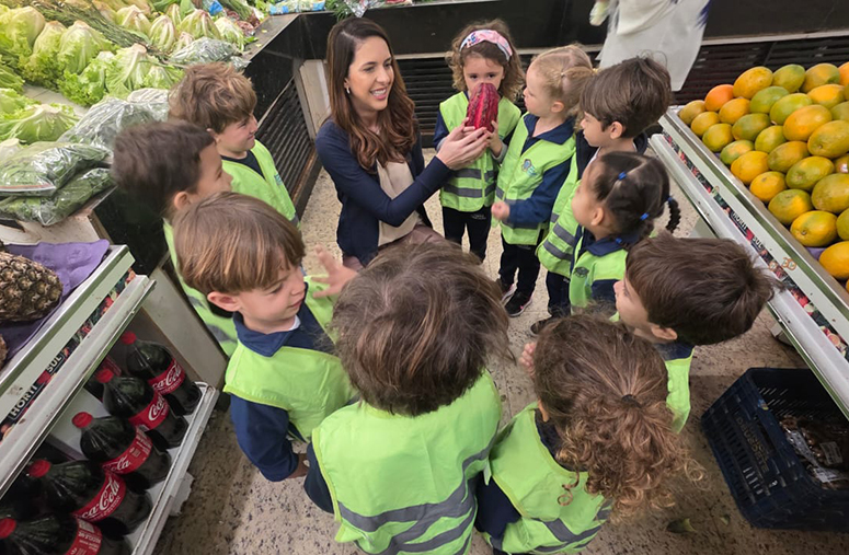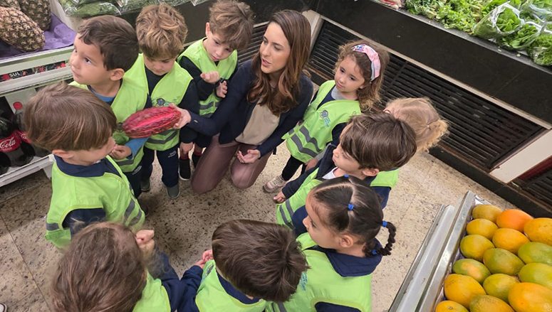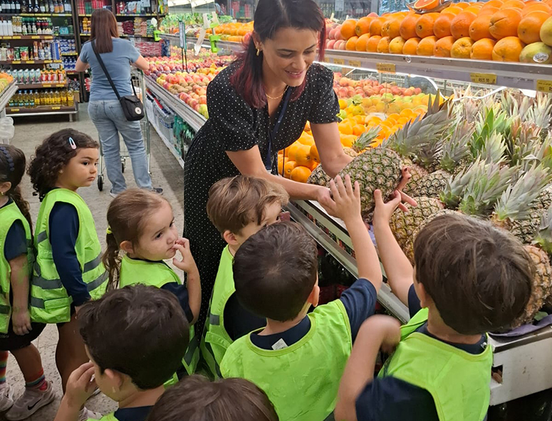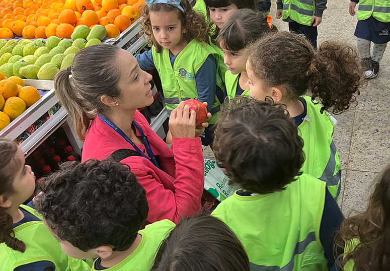 As crianças do Maternal 3 estão engajadas no projeto Partilha de Frutas. A primeira parte foi realizada em parceria com o Sacolão Hortisul, que recebeu as turmas para um trabalho de campo que apresentou novas frutas, demonstrou como são compradas e de onde vêm até chegarem à mesa de casa.