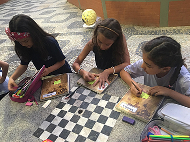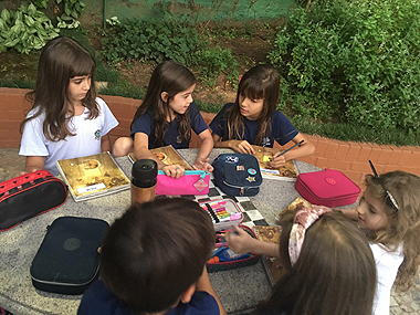 Além das descobertas, as crianças tiveram o privilégio de encontrar abelhas polinizando as flores do Parque da Acolhida. Após tantas vivências significativas, os alunos escreveram frases incentivadoras da preservação das abelhas e anexaram suas produções na colmeia conscientizadora.