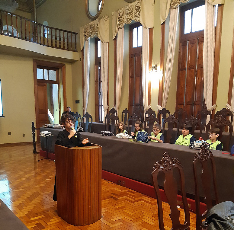 4o ano – Turma 43T – Professora Mitchelem A turma do 4o ano participou do Programa Conhecendo o Judiciário, do Tribunal de Justiça do Estado de Minas Gerais, que visa promover a comunicação com a sociedade, por meio de atividades direcionadas. Os alunos visitaram o Salão Nobre, o Museu e a Sala de Julgamento, assistiram a um vÃdeo institucional e realizaram a simulação de um julgamento.