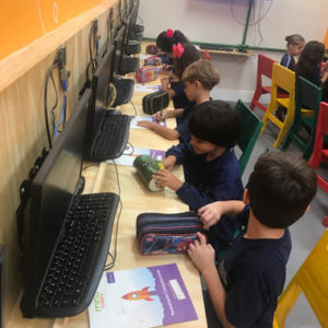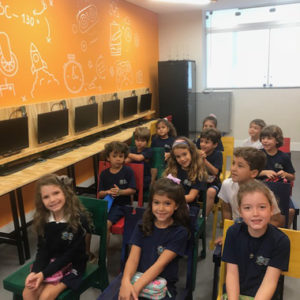 Foi com muita alegria e motivação que a turma do primeiro ano iniciou as atividades nas novas salas de MindMakers. Com muita curiosidade e vontade de aprender, as crianças já estão desenvolvendo habilidades e aplicando conhecimentos! Na primeira aula aprenderam a identificar os componentes de um computador e a trabalhar em grupo com um desafio: fazer o deslocamento de um homem-robô num grande tabuleiro. Aplicaram noções de direita e esquerda para atingir o objetivo final dessa proposta.