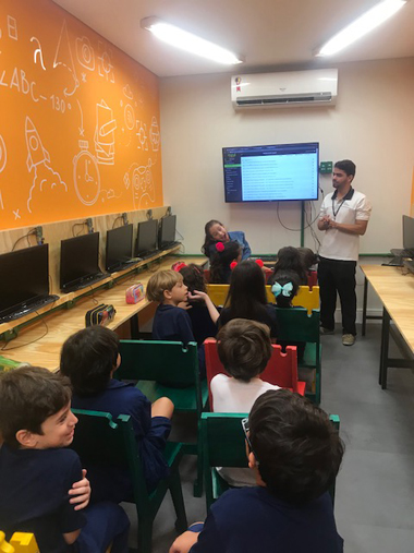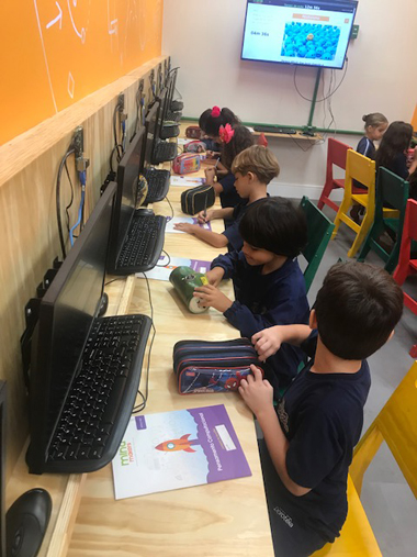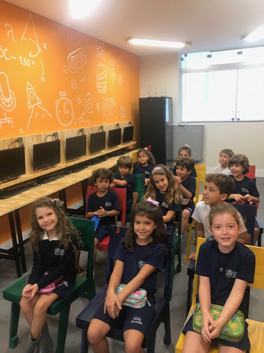 Foi com muita alegria e motivação que a turma do primeiro ano iniciou as atividades nas novas salas de MindMakers. Com muita curiosidade e vontade de aprender, as crianças já estão desenvolvendo habilidades e aplicando conhecimentos! Na primeira aula aprenderam a identificar os componentes de um computador e a trabalhar em grupo com um desafio: fazer o deslocamento de um homem-robô num grande tabuleiro. Aplicaram noções de direita e esquerda para atingir o objetivo final dessa proposta.