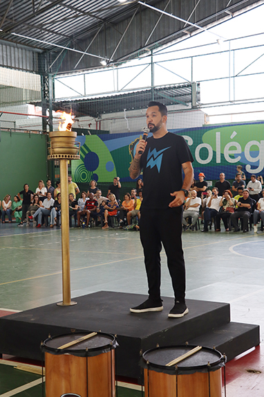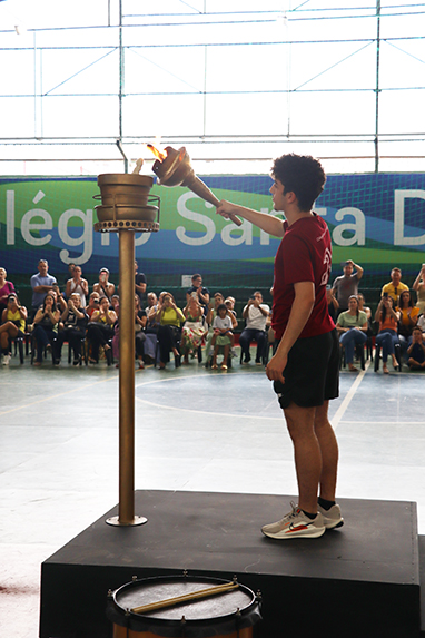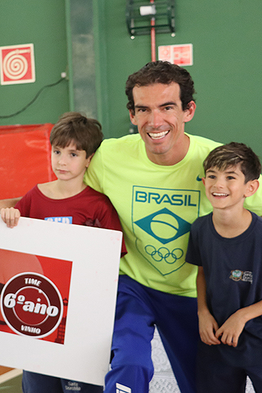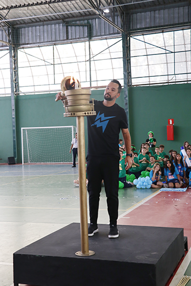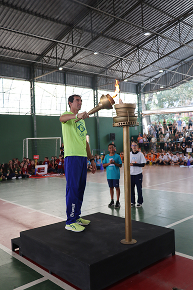 Setembro foi mês de mais dois grupos de séries para os Jogos Internos. Dessa vez, para as turmas do 6º e 7º Ano/EF e do 3º ao 5º Ano/EF. Ao todo, foram seis dias de atividades esportivas e interatividade nas várias modalidades. Cada perÃodo teve sua abertura com desfile das equipes, das bandeiras e o passeio da chama olÃmpica seguido pelo acendimento da pira, realizado por três convidados. No dia 3/9, na abertura do 6º e 7º Ano/EF, tivemos a participação de Diogo Sclebin, triatleta olÃmpico brasileiro. Dia 17/9, foi a vez do ex-atleta William Arjona, campeão olÃmpico de vôlei na Rio-2016 e pai de dois estudantes do Colégio, participando da abertura do 3º ao 5º Ano/EF no turno da manhã, e o aluno do 3º Ano/EM, Miguel Valadares, que é atleta de futsal na equipe dos jogos intercolegiais, participando da abertura nas turmas da tarde.