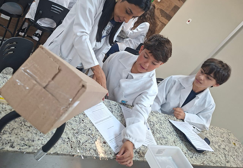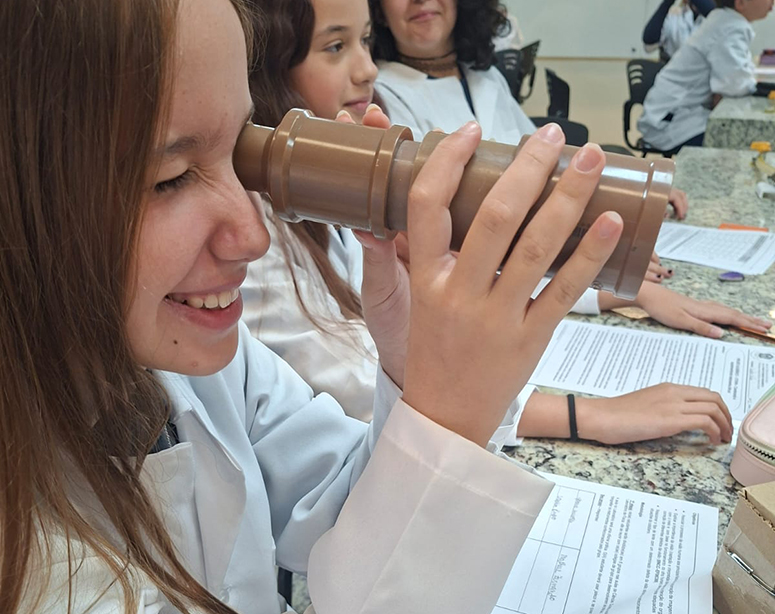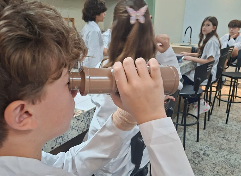 Estudantes do 6º Ano participaram de uma oficina para a confecção de instrumentos ópticos, realizada em parceria entre as disciplinas de Ciências e Física.