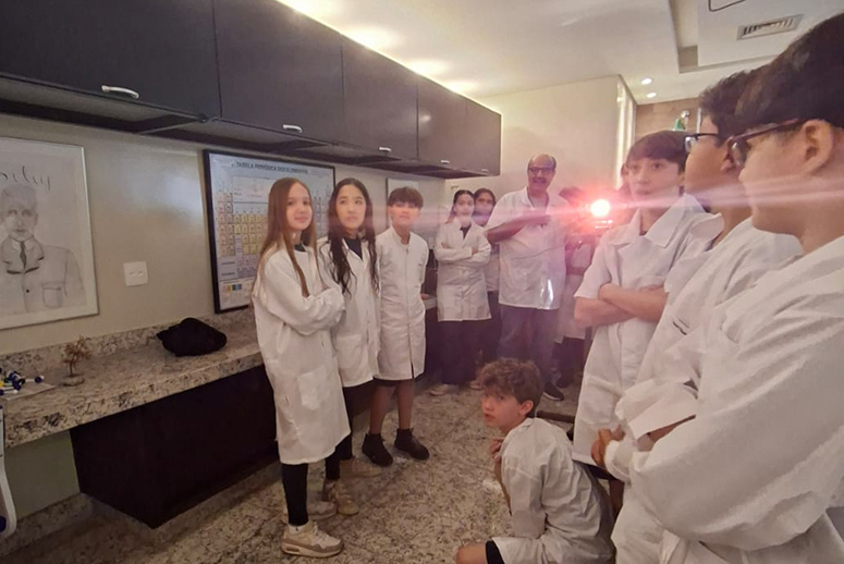 Além disso, os estudantes exploraram lunetas e projetores de slides antigos, conectando o passado e o presente da óptica. Foi uma experiência rica em aprendizado, curiosidade e muita empolgação!