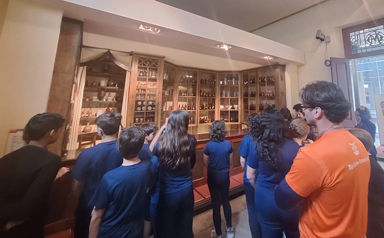Partindo dessa premissa, estudantes do 7º Ano/EF realizaram no dia 29 de agosto uma visita ao Museu de Artes e Ofícios, no Centro de Belo Horizonte. Essa atividade buscou promover uma memória viva do trabalho artesanal e manual, oferecendo um panorama completo da evolução dos saberes e das técnicas que moldaram a base da produção no Brasil.