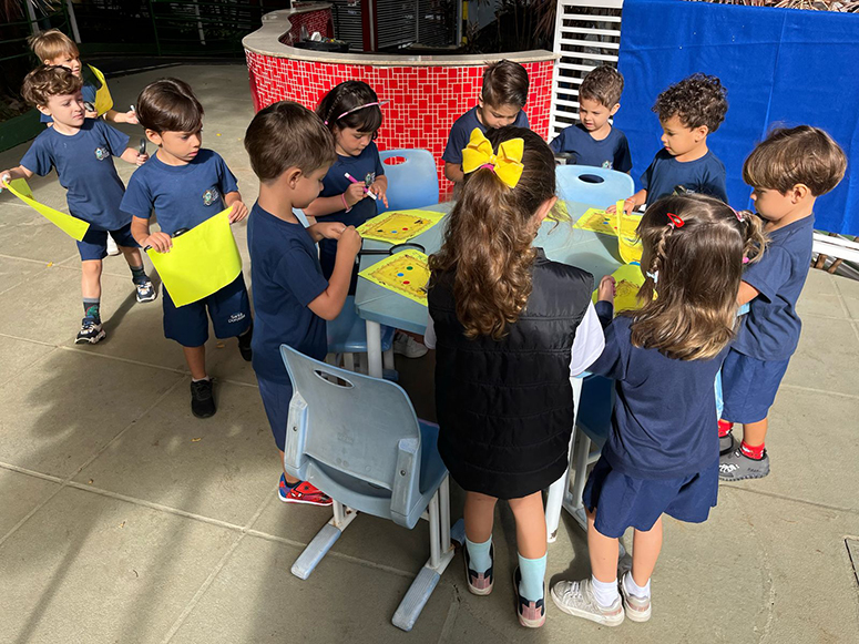 As turmas do Infantil 1 deram inÃcio à s atividades no primeiro caderno escolar. Para tornar esse acontecimento memorável, foi preparado um momento lúdico e instigante: a busca de um grande tesouro.