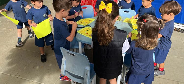 As turmas do Infantil 1 deram inÃcio à s atividades no primeiro caderno escolar. Para tornar esse acontecimento memorável, foi preparado um momento lúdico e instigante: a busca de um grande tesouro.