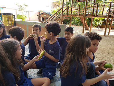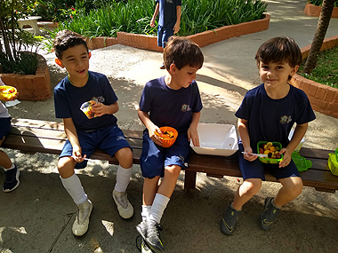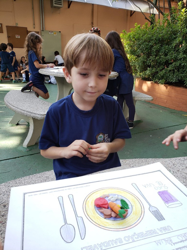 A turma 14T mergulhou no universo dos estudos sobre alimentação. Muitas experiências ricas e de significado foram vivenciadas pelos alunos. Entre reflexões sobre o próprio lanche, a preparação de um sanduÃche, a roda para conhecer frutas, legumes e verduras, o dia da salada de frutas e a discussão e pesquisa sobre a origem dos alimentos e o hábito de ler rótulos, elaboração de uma refeição saudável usando massinha, muito aprendizado foi construÃdo. Como é bom aprender através de vivências!