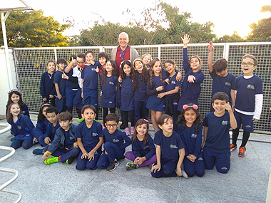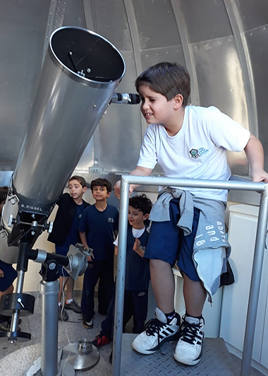 Os alunos do 2o ano estão estudando em Ciências, o céu. Para aprender um pouco mais proporcionamo-lhes uma visita ao Observatório. O professor Rogério, responsável pelo Observatório, fez com que essa visita fosse um encontro mágico e de muitas descobertas.