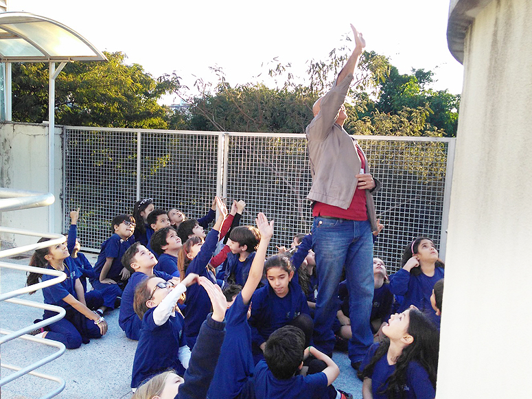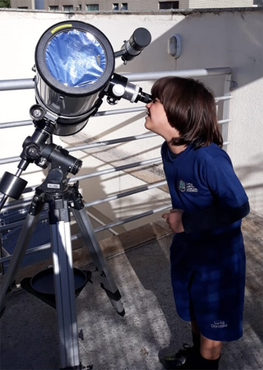 Além de observar o Sol e a Lua os alunos puderam fazer perguntas e encantaram-se com esse momento. Professoras do 2o ano |