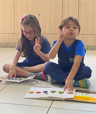 Estudantes do Programa Bilíngue do Colégio Santa Dorotéia de Belo Horizonte, do Maternal 2 ao 5º ano do Ensino Fundamental, vivenciam práticas decorrentes de interação significativa e de aprendizagem ativa de uma segunda língua, com foco na formação integral de sujeitos capazes, apreciadores da diversidade e da cultura do respeito em um mundo multicultural.